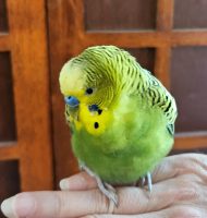 Found on our patio table, it’s not talking but it stepped up as if it’s a tame pet. Currently safe inside in a cage, headfirst into a bowl of seeds.