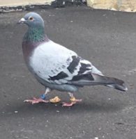 pigeon has a blue band on right foot – AU GLI xxx (can’t read the second set of letters very well, but I think they are GLI )