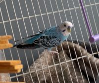 Blue parakeet found in Oakville, MO on April 28th, 2020. Male, no band or chip.