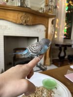 Bird was found on Coleman Rd in Villa Ridge, MO. Blue and gray, with a striped head, gray wings, and blue body. Cute little bright blue spots on cheeks. Very friendly, hopped right onto our hand when found. Was clearly thirsty and hungry, and has been fed and watered.