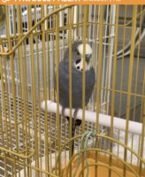 Male parakeet. Adult. Indigo/blue feathers and blue feet. Black stripes on wings. Looks comfortable around people. Not sure if he is hand trained. Has a tag. Message for more tag info. Tag begins with OK…