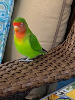 The Lovebird is being cared for by the owners of The Porch Crepe Cafe. Ask for Deb.