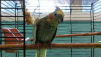 Very friendly and hand tame bird found outside in West babylon. Was brought to exotics veterinary clinic in Huntington station. Is plucked on both legs. Can be reached at 631-424-0300