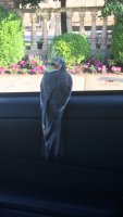 My mom found this cockatiel yesterday May 31 in Floral Park NY. My mom whistled at the bird who was up on a wire and the bird flew down to my moms hand. Fortunately my mom and I have cared for these birds for years. We are prior breeders so the bird is in safe hands. Bird looks like it had a rough day(s) weeks. Who knows. Very tired and puffed out. Please let me know if the bird is banded or not. Regards. Catherine.