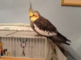 AUGUST 27-14  – COCKATIEL, Huntington.  Has clipped wings, not banded.  Very friendly, came right to finger and sat calmly in moving car.  Missing toe on right foot.  Currently caged.