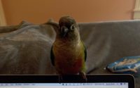 Relatively friendly Green Cheek Conure found being attacked by sparrows on our back porch. We’d love to get him home!