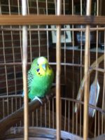 It landed on my birdfeeders outside on Saturday, May 9. After observing it for a few minutes I decided to try and bring it into the house because I was afraid he would fly away and then get hurt or get into bad weather or something. I had an old antique birdcage that I put him in and he has been there ever since. Please help me find this birds!