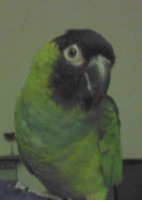1-3 yr old Nanday Conure, tame to hand, doesn’t talk, normal bird sounds so far. Mainly green with black top and tail. Has leg band, silver with letters PPF-xx-xxx. Found in Portland, Oregon Aug 22.