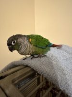 This bird, which I believe is a maroon tailed Conure, was found in Perth Amboy. Wings are not clipped, has no band and is very friendly.