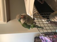 This bird showed up on my back porch. Apparently she has been roaming different neighborhoods for the past couple of weeks. Very tamed and will come out and set on shoulder. I kept her until today but has been taken to a local vet that has experience and knowledge of excotic animals. She has a gray band located on left ankle. Me and my girls hope to find it’s owner soon.