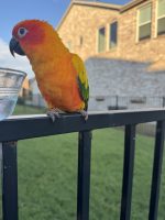 Looks like a small parrot. I can’t see the entire band. Kook something.