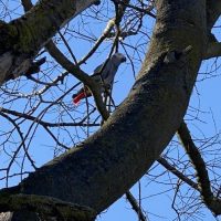 Message from Finder: Beautiful African grey parrot FOUND in my neighbors tree. Looks very scared. Might get too cold for it tonight. Hopefully finds it’s family soon.