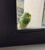 Pet bird (I believe it is a green Budgie) spotted  (SIGHTING) on south side of Memorial Hermann Southwest building, located at Beechnut and 59. After trying to entire the bird off the side of the building and in through a window to food and water, the bird flew away and has not been seen by the reporting hospital employee since. Good luck to this bird and its owners.