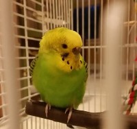 Seems fairly tame, does not fly about he cage when people, cat or dog come close.
