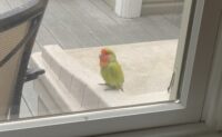 SIGHTED in back yard – Mostly yellow (green tint) body with orange head and beak.