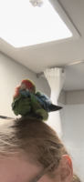 Sweet affectionate bird. IDK the sex. Found her in a tree in my yard and she hopped on my shoulder/head and let me carry her inside. During the day she likes to sit on my head and nibble my hair. She is clearly someone’s pet and bonded with the owner. I found her in good healthy condition so it seems she hadn’t been wandering outdoors for more than a few hours and I would say no more than 24 hours when I found her on 9/26 at 6 PM. IDK if she is so comfortable with me because I resemble her owner but for what it’s worth I’m a White, 5”2’, petite, blonde, 28 y/o female.