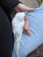 Found outside, white bird with a light blue tinge on the right wing. Very friendly. Cannot fly, and is weary of men.