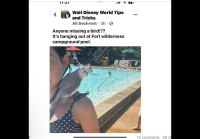 this bird was found at disney fort wilderness campground pool. there are posts on facebook lost & found groups about it. someone online said that the disney cast at animal kingdom has it — not sure, so far, i haven’t been able to get information by email from disney about where this bird went. hope it finds its way to the owner! or, at the very least, an awesome family! if u think this is your bird might be best to go straight to disney and inquire.