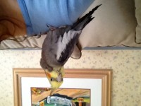 Friendly,but nippy does not like to be pet. The face is yellow with orange patch. Crest is yellow with gray at end.