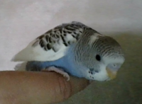 was only 42 days old was gray and with the belly was dark blue with a little bit of white and on top of its head it head a little bit of white