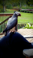 Craig loves to talk but unfortunately tends to be quieter outside. Some of his favorite phrases are “pretty Deebo”, “peekaboo” (in whistle form), and various other parrot sounds. He love pecans and prefers males over females.