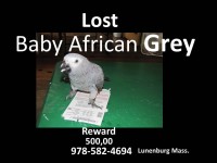 krackers is a 7 month old baby African grey,, he was hand fed at 4 weeks old, sings songs and talks,, there Is a 5 hundred dollar reward for the return of this bird,, we are totally heartbroken,