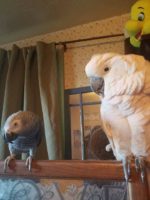 Anabelle is the bird on the left, she is an African Grey, she escaped from my home afternoon time on Sunday Nov 20 2016. Please help us bring her home!