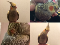 My male cockatiel got scared and flew away today March 29, 2016. His name is Fluffy and he is 4 months old. We love him very much and my little sister and I miss him a lot already. We hope he can return home to us soon. He is very friendly and tame, he loves to interact with people and might fly onto your head. He may try to scare people off by hissing or pretending to bite due to stress, but it does not hurt/he doesn’t bite hard. He is a cinnamon pearlie pied cockatiel; his body is mostly grey with yellow spotting; his head is yellow with grey spotting, he has a grey crest and orange cheeks. He was last seen on N 22nd Ave and W Indian School Rd in North Encanto, Phoenix. Please contact me if you have any information at 1(714)914-6664. A reward is offered to whoever finds him. Thank you