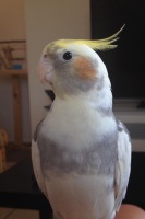 Tame: He is very tame! LOVES people! If you put your hand up to him he will jump right on. Prefers people over other birds.