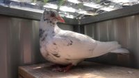 Friendly pigeon. Will likely seek food or shelter with humans. No leg band or microchip.
