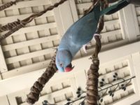 Blue Indian ringneck, friendly in nature and talks a lot if you hold up the selfie camera on your phone to his face. Please contact.e if you see him, we miss him dearly!