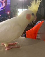 Skittles is a Lutino Cockatiel that is just over one and a half months old. Super people friendly, knows step up and is very accustomed to people. Hope to find and get my baby back ASAP