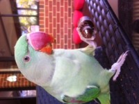 Buddy is very tame with me and very talkative. She loves to fly onto my head and loves kisses