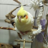 Chu is a lutino cockatiel parrot.he is 10 months old.he has a problematic leg.his right leg was cracked when he was baby so it is now shaped as angled.but he can fly and pearch well.his right can be definitely seen as different. He has very yellow crest and he responds to his name “chu” ,”good boy” and harry potter theme song.he can say good boy.he loves the sound of drums and he does beak grinding then.
