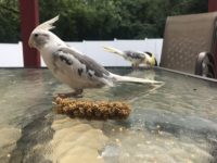 White cocktail with grey feathers. the wings are slightly clipped but the bird does fly.