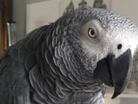 Iago is an African Grey, he is 5 years old. He is generally cautious and doesn’t step up. For those familiar with Bethesda, he flew in the direction of the crescent trail from the sumner village.