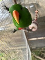 Chip makes a high pitched squark and says “get out of it” “come on” “hello” and “hello chippy” a lot.