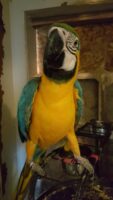 He is a blue and gold macaw he is friendly, ease help me find him my number 2145510031