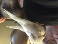 He is very sweet and friendly. He is hand trained, but has recently been wanting to fly more than jump right onto your finger. Regardless, his call is the wolf whistle, but he also responds to kissing noises or any whistle really. He is still very young, only about 10 months old.