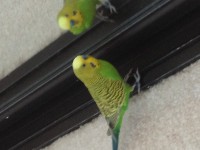 Green Budgie that flew away. Male. 30 dollar reward for finding my lost bird. Please call or text me as this is the best way to reach me. He flies around our house well, and likes to eat seeds. He might fly away from strangers, but I do not know how he will behave outside. Please be on the lookout as he flies frequently and sings. Running water almost guarantees that he screams, or sings. Band is on right leg.