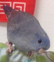 Bruce is considered a Cobalt-Blue Linny. His head is bright blue and becomes a gray-blue further down his body. He has some black speckles and zebra-like stripes on his under belly region. Unfortunately, he recently had his band removed by the vet.