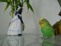 Bibi1 is a 10 year old female parakeet who can fly (her wings are not clipped). She is green with yellow face and a small yellow spot on the back of her head. She is older and has arthritis on both her feet. She looks a bit shabby in the picture because she was on medication at the time which she liked to spit out but now she is off medication and she looks a bit different from the picture. She is actually quite beautiful and sweet. Though behaves stubbornly at times. If you find her, please hold her tight but do not squeeze her too much.