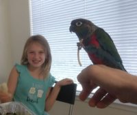 Stolen from my home (travel cage also taken). Trained with basic commands (step-up, shoulder, poop, no bite). Favorite words to say (“Treat”, “Good girl”, “No bite”)