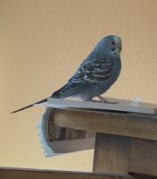 Ube is a blue/grey parakeet with a white and pink-ish ceres