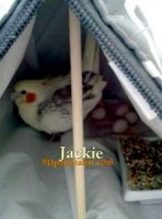 Lost CA Rancho Bernardo Pied Cockatiel ‘Jackie’ Aug 12-14 Jackie is finger friendly and likes people. She may be in the vicinity of my address at 12045 Lomica Drive in Rancho Bernardo. Jackie is a bright yellow female and only whistles. If you see her, please call Glennis Swan at 1.858.618.1860,