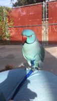 No band, holds his wings oddly, does not talk but has a few key whistles. HATES when others whistle and will scream at anyone who does