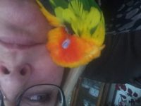 Roxy is a tame, friendly bird. Her colors are yellow, orange, green and blue. Her favorite treate is dried papaya. She is missed greatly!