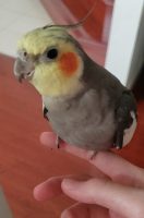 Candy is a gray female cockatiel about 2 years old, she’s very friendly and knows how to step up, she won’t bite if picked up and loves to eat millet.