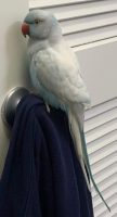 Indian Ringneck. Sky blue with orange beak. Named “Ara.”