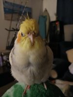 She is very friendly. I lost her late Thursday night at Mildred and Pacific. I think she flew across Pacific to 18th Street and the beach. She’s white and Grey and answers to Peaches. She has very long yellow crest feathers and is very fluffy.